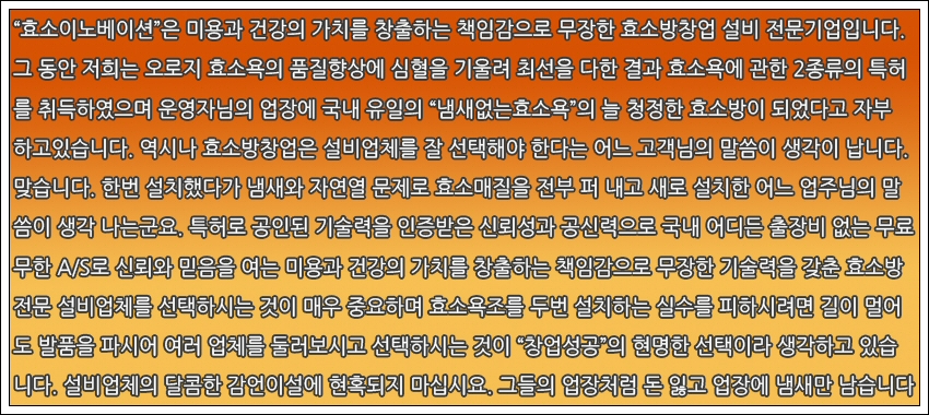 ÀÌ·± ¹®±¸¸¦ °è¾à¼­¿¡ ³Ö¾î¾ß¸¸ ÈÄȸÇÏÁö ¾Ê´Â â¾÷À̵˴ϴÙ. ¼³Ä¡ ÈÄ ÇÑ´Þ ¾È¿¡ ¹Ýµå½Ã ¾Ç¼ºÀÇ °í¾àÇÑ  ³¿»õ°¡ ³ª±â ½ÃÀÛÇÕ´Ï´Ù.